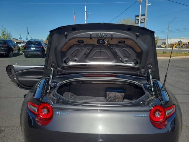 Leather Seats, Navigation, Heated Driver Seat, Back-Up Camera, Premium Sound System, Satellite Radio, iPod/MP3 Input, Onboard Communications System, Aluminum Wheels, Remote Engine Start, WiFi Hotspot, Smart Device Integration, Cross-Traffic Alert, Apple CarPlay®, Blind Spot Monitor Mazda MX-5 Miata Grand Touring with Machine Gray Metallic exterior and Black interior features a 4 Cylinder Engine with 181 HP at 7000 RPM*.